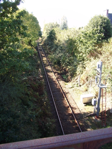 Vue générale de la voie ferrée à hauteur du lieu-dit Lostang en direction du centre-ville de GuingampImmatriculation