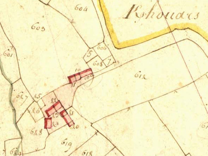 Extrait de la feuille A2 du cadastre ancien de la commune de Trégrom, 1834 : KerhouarsImmatriculation