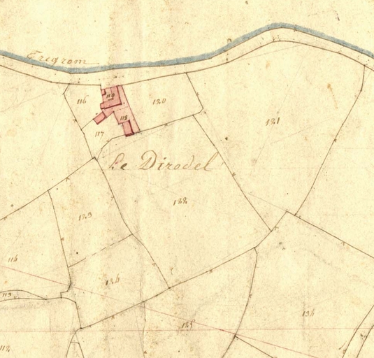 Extrait de la feuille C1 du cadastre ancien de la commune de Trégrom, 1834 : le DirodelImmatriculation