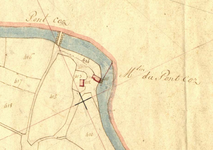 Extrait de la feuille D1 du cadastre ancien de la commune de Trégrom, 1834 : Pont CozImmatriculation