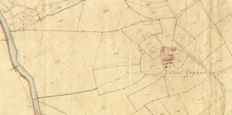 Extrait de la feuille D2 du cadastre ancien de la commune de Trégrom, 1834 : Coat LéguerImmatriculation