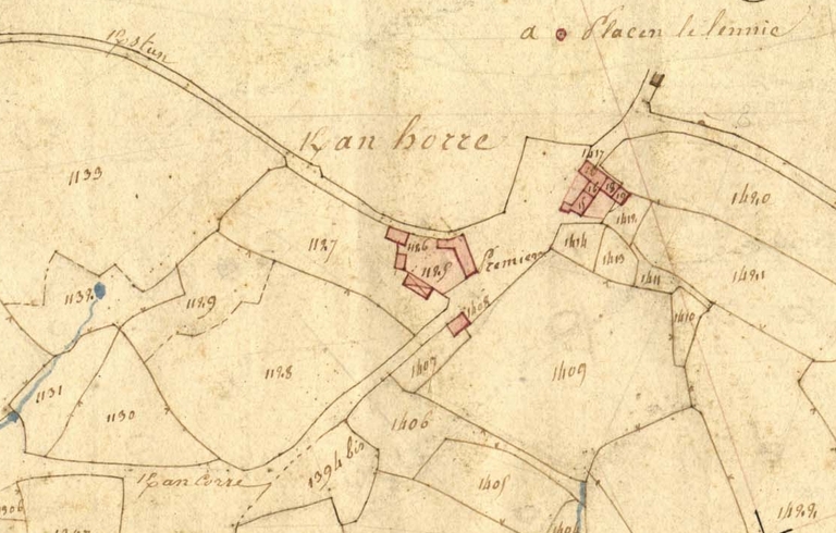 Extrait de la feuille D3 du cadastre ancien de la commune de Trégrom, 1834 : Ker an HorrImmatriculation