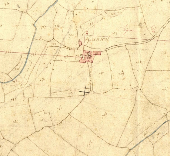 Extrait de la feuille C2 du cadastre ancien de la commune de Trégrom, 1834 : hameau de KeranscotImmatriculation