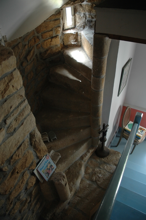 Vue intérieure au sommet de la tour d'escalier : escalier en vis secondaire (la tour a été arasée)Immatriculation