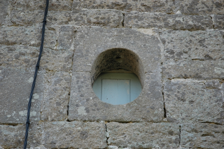 Vue de l'élévation antérieure orientée vers l'est : oculus de forme ovoïde à l'étageImmatriculation