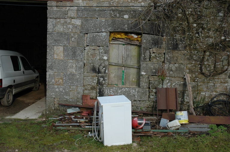 Trégrom, Kernaman : grange écurie, élévation orientée vers le sud-est, porte ouest avec linteau en rac segmentaire (réduite en fenêtre)Immatriculation
