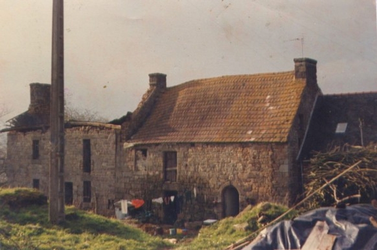 Alignement des deux fermes situées à la perpendiculaire du manoir, élévations principales (source : site Internet du projet Coat Léguer). L'une est datable du 17e siècle, la seconde du 19e siècle (après 1834)Immatriculation