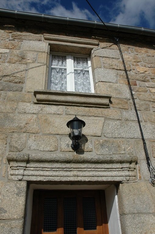 Détail de l'inscription située au-dessus de la porte d'entrée et du décorImmatriculation