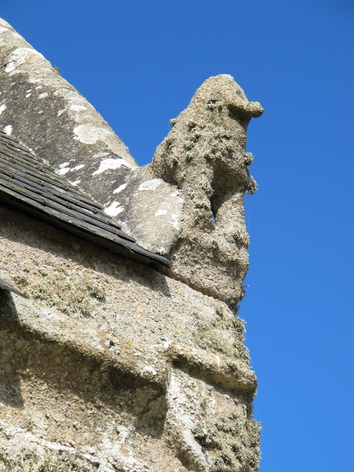 Elévation est, chapelle seigneuriale, détail de la crossette nord, lion monolithe en graniteImmatriculation