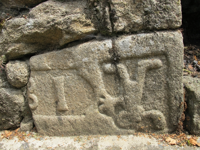 Trégrom, Kergueffiou : inscription figurant sur une pierre de remploiImmatriculation
