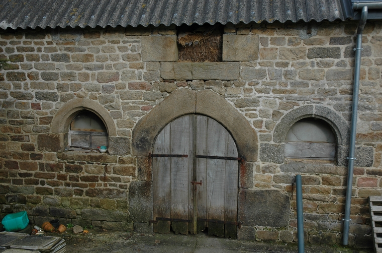 Trégrom, Kernaman-Huellan : dépendance (étable, fournil à l'extrémité est) reprenant des éléments anciens du 17e siècle. La lucarne, aujourd'hui disparue, est datée par chronogramme de 1690Immatriculation