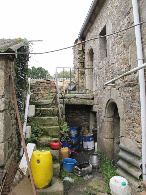 Plougras, Kerradenec : ancien manoir. Logis à étage (logis du manoir servant de lieu de résidence aristocratique) datable du 4e quart du 16e siècle. L'escalier extérieur permet l'accès à la salle hauteImmatriculation