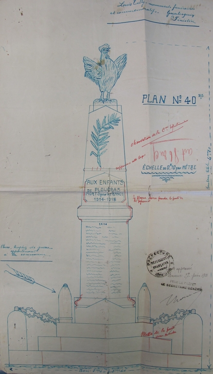 Elevation du monument aux morts de Plougras par Louis Tilly (monuments funéraires et commémoratifs à Guerlesquin), 1921Immatriculation
