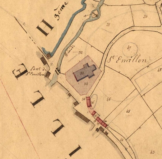 Extrait du cadastre ancien de la commune de Loguivy-Plougras, 1834 : situation de la chapelle Saint-EmillionImmatriculation