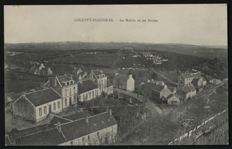 Loguivy-Plougras, le bourg : la mairie et les écoles, carte postale, 1er quart du 20e siècleImmatriculation