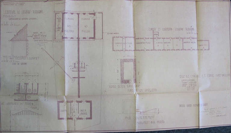 Loguivy-Plougras, le bourg : aménagement des bâtiments communaux, coupes et plans de l'école, 15 septembre copie du plan du 15 septembre 1917 (23 avril 1937)Immatriculation