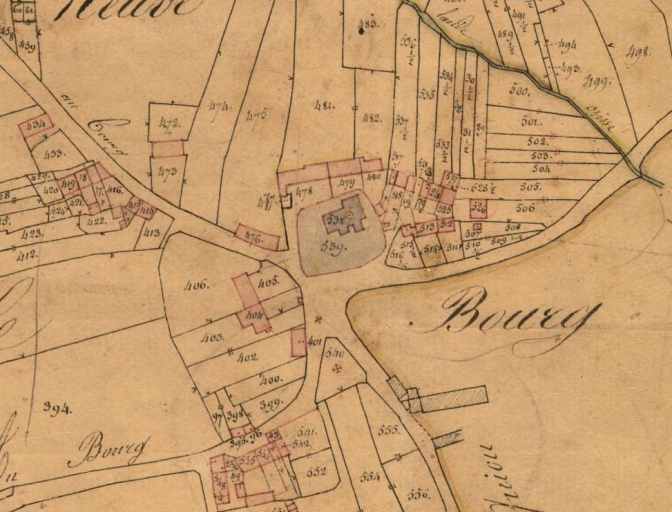 Extrait du plan cadastral de 1833, le bourg, implantation de l'ancienne église paroissialeImmatriculation