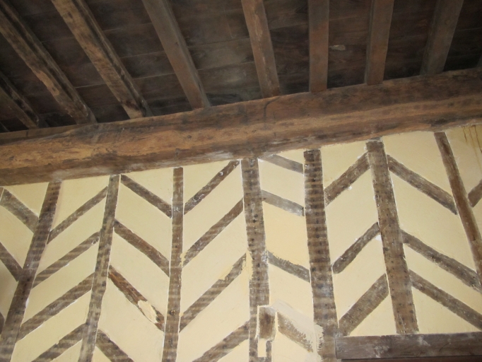 Vue intérieure, cloison nord en pan de bois de la salle basseImmatriculation