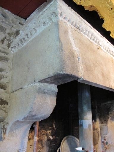 Vue intérieure, cheminée de la salle, détail du linteau arrondiImmatriculation