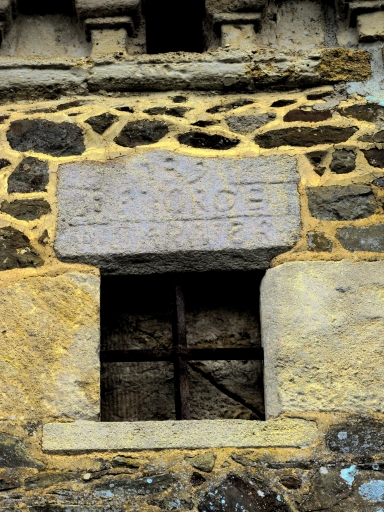 Détail : fenêtre du grenier, linteau avec inscriptionImmatriculation