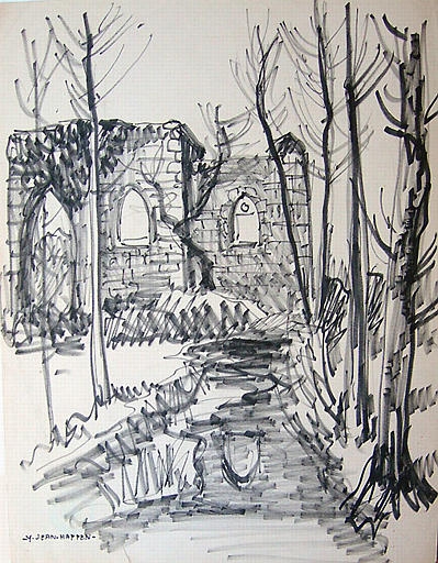 L'ancienne église paroissiale (Dessin par Yvon Jean Haffen, juillet 1945)Immatriculation