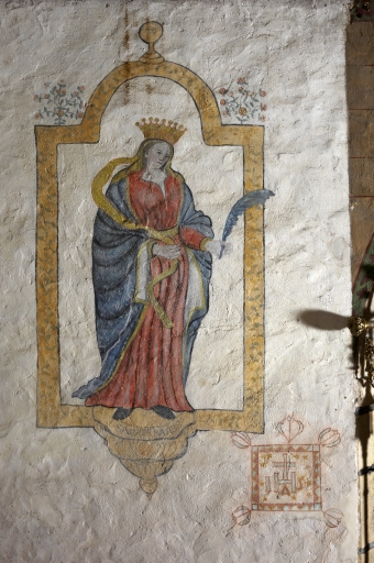 Intérieur : choeur, mur nord, peinture murale (sainte Barbe)Immatriculation