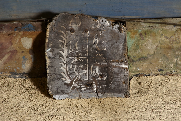 Intérieur : bras nord, sablière et blasonImmatriculation