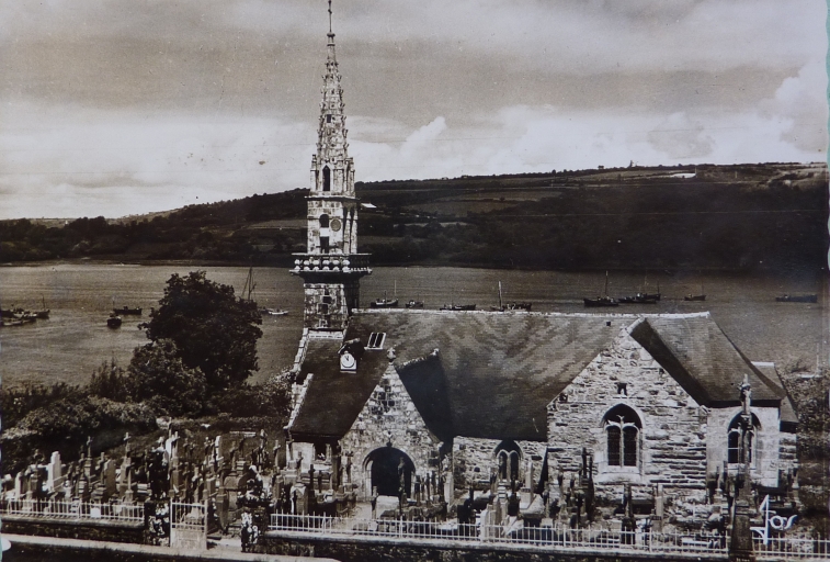 L'église paroissiale dans les années 1960. Carte postale (Archives départementales du Finistère)Immatriculation
