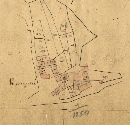 Plan-masse du hameau en 1831. Extrait du cadastre, section A (Archives départementales du Finistère, 3 P 291)Immatriculation