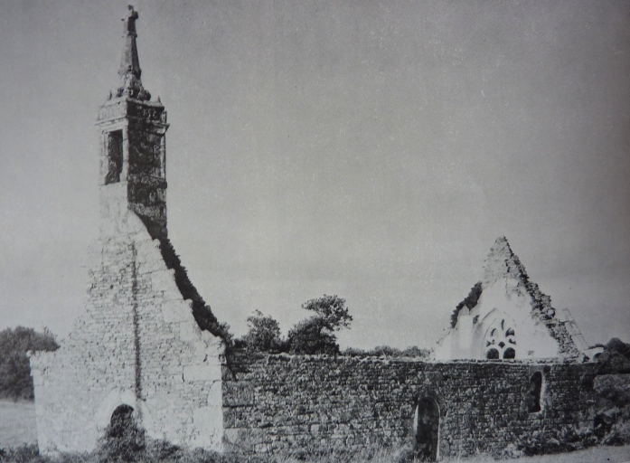 Chapelle Saint-Nicodème à Kergloff, 1551, état dans les années 1960. Le clocher a été remployé dans la chapelle Saint-Fiacre de Crozon.Immatriculation