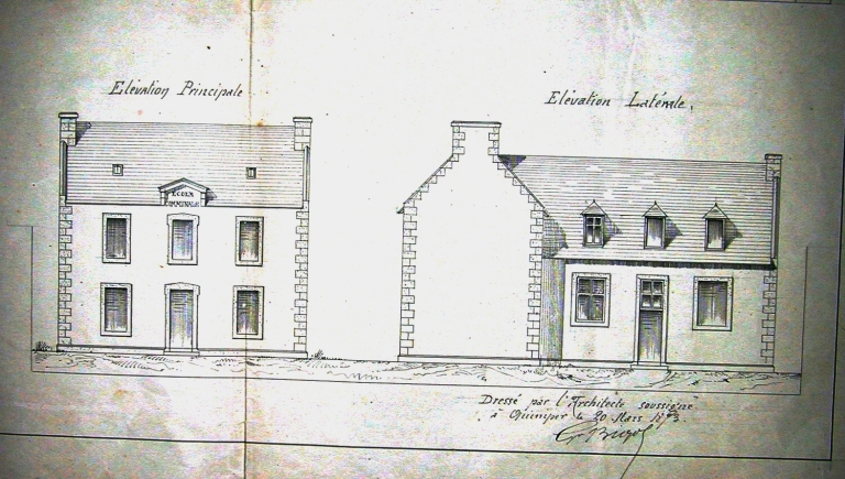 Elévations principale et latérale. Projet Joseph Bigot, 1873 (Archives de l'évêché, Quimper, fonds Bigot, 8 L)Immatriculation