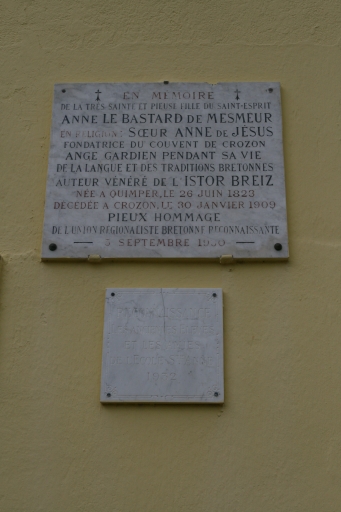 Plaque commémorative dédiée à Anne de MesmeurImmatriculation