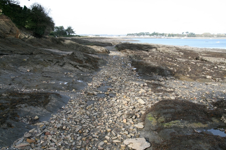 La grève. Chemin taillé dans la roche pour le transport du goémonImmatriculation