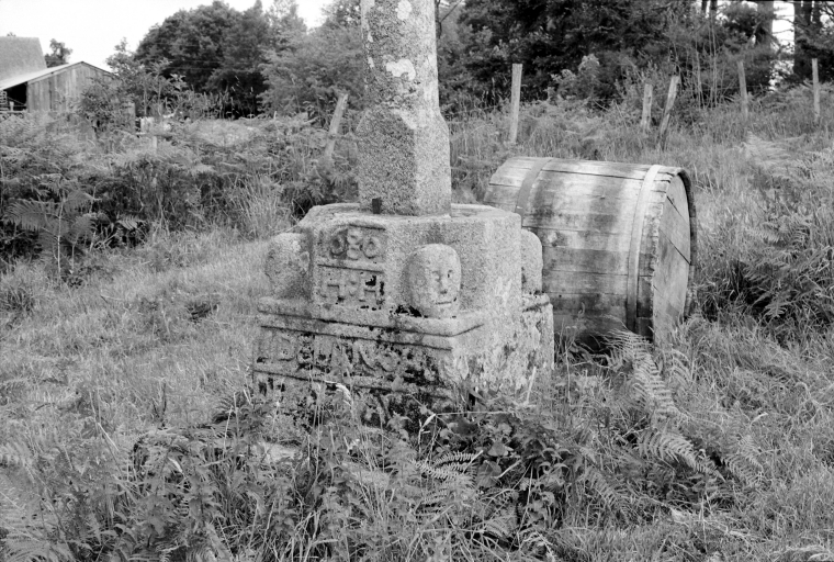 La Gravelle, détail du socle de la croix de chemin.Immatriculation