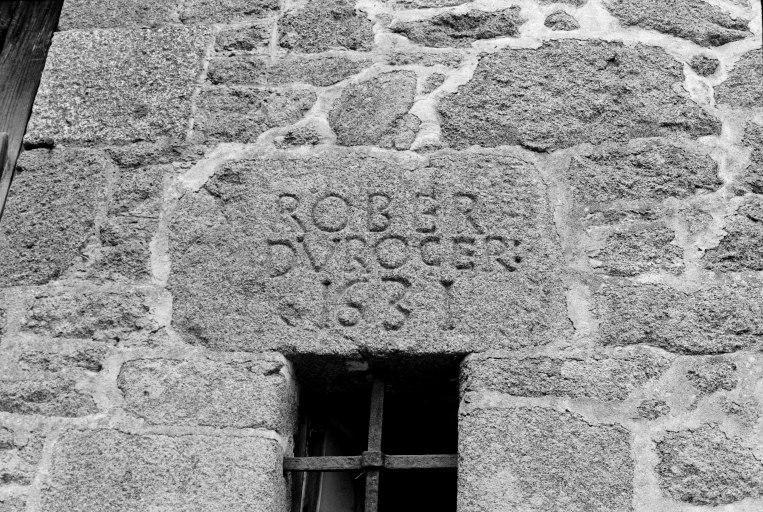 La Haute Rouaudais, ferme 1, détail du linteau.Immatriculation