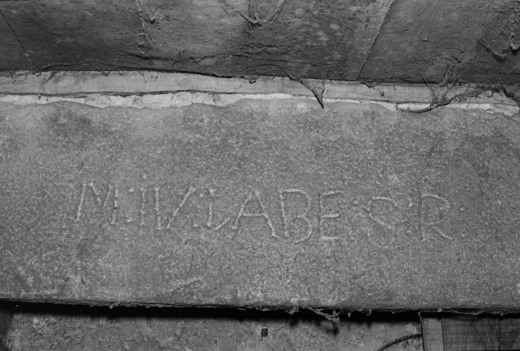 Inscriptions, linteau de cheminée de l'étage.Immatriculation