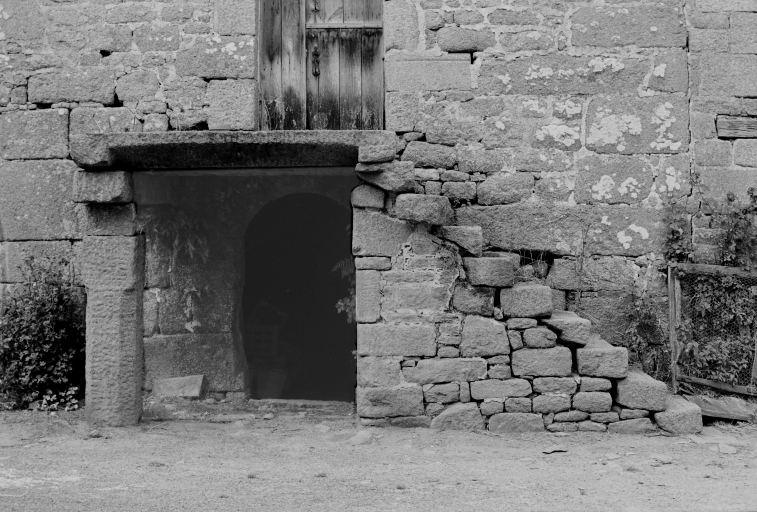 Brimenel, ferme (détruite), escalier et porte du rez-de-chaussée.Immatriculation
