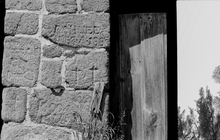 Saint-Martin, moulin, détail pierres sculptées.Immatriculation