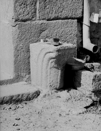 Pierre sculptée, porte d'entrée de la façade sud.Immatriculation
