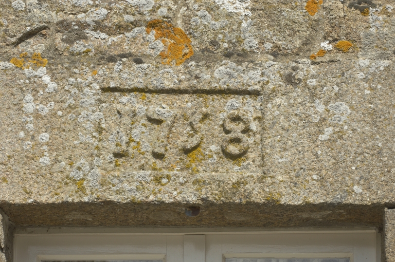 Date portée sur la façade d'un bâtiment du Pont Dom Guérin, la Bazouge-du-DésertImmatriculation