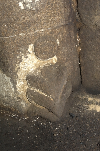 Maison datée 1692, détail sculpté, piédroit de cheminée.Immatriculation