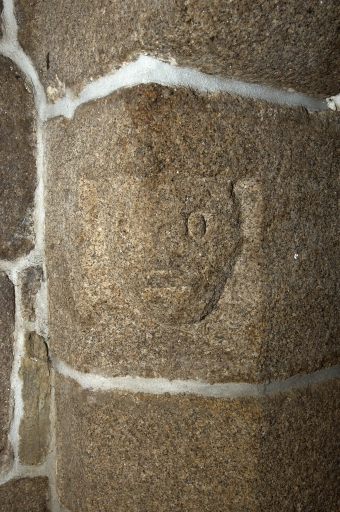 Visage sculpté sous le corbeau de la cheminée de la salleImmatriculation