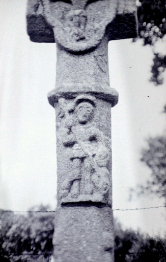 Détail du personnage sculpté, milieu du fût.Immatriculation