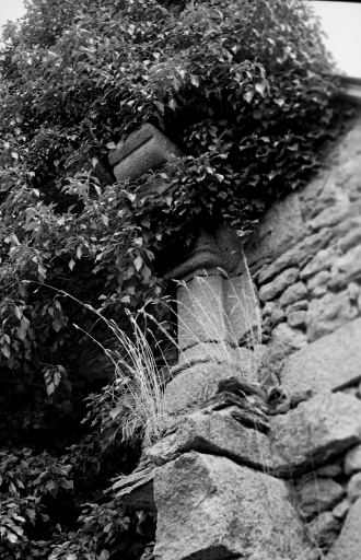 Le Breil Renard, ferme, cheminée de l'étage en ruine.Immatriculation