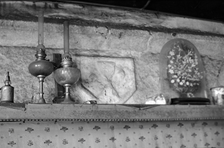 La Pissote, ferme, calice sculpté sur le manteau de cheminée.Immatriculation