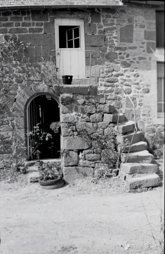 Le Tertrais, ferme 1, escalier et porte du rez-de-chaussée.Immatriculation