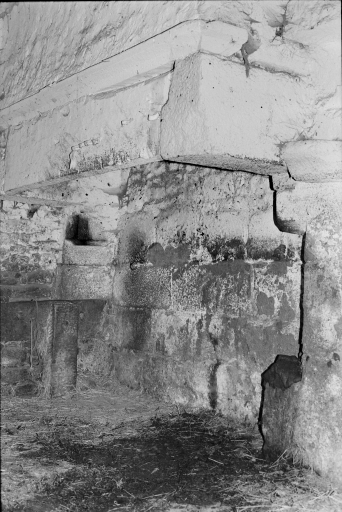 Ancienne cheminée du rez-de-chaussée, vue de trois-quart.Immatriculation