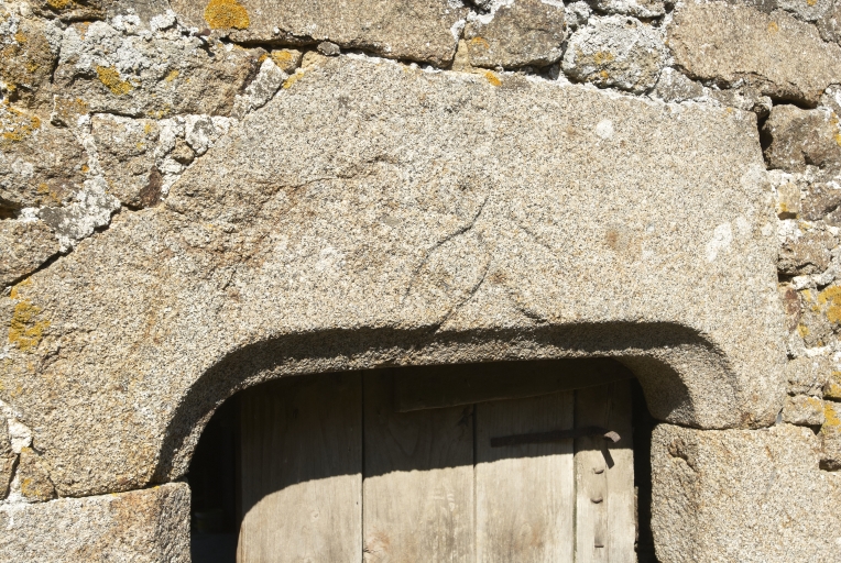 Détail du linteau à accolade, porte de la dépendance.Immatriculation