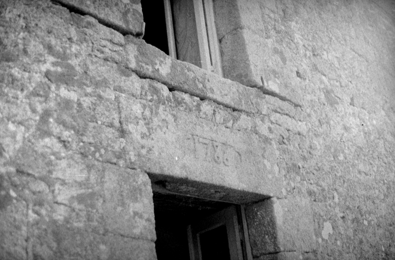 Linteau daté 1786 sur un bâtiment situé dans l'écart, années 1970Immatriculation