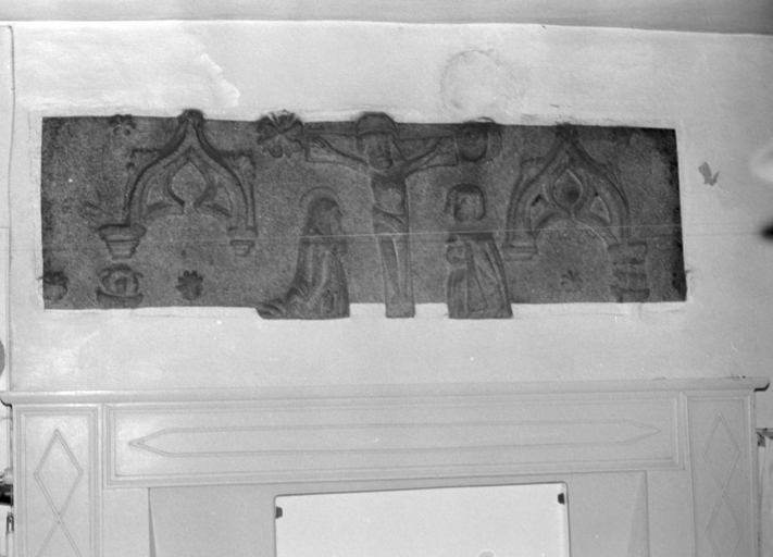 Partie de retable de l'ancienne église remployé dans la cuisine du presbytère, années 1970Immatriculation